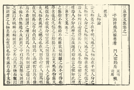 《三鱼堂集》中颇有反映陆氏理学思想、践履施为及清初社会情状的材料,较为重要。所见版本有清康熙刻本、《四库全书》本等。此次整理,以北京大学图书馆藏康熙刻乾隆以后印本为底本,以天津图书馆藏康熙刻本初印本对底本中的剜改及删略处进行了复原,并校以影印文渊阁《四库全书》本。底本卷首原附有魏象枢奏疏两篇,卷末附有《崇祀录》一卷,因其对于了解陆氏生平及思想意义不大,一并删去。